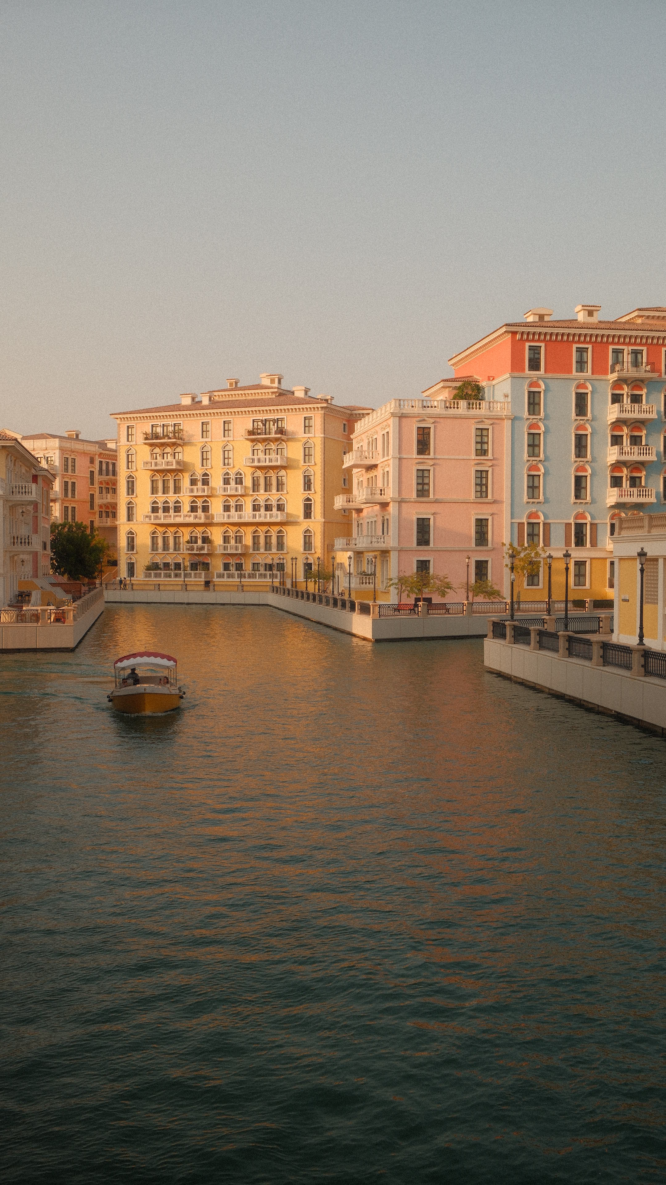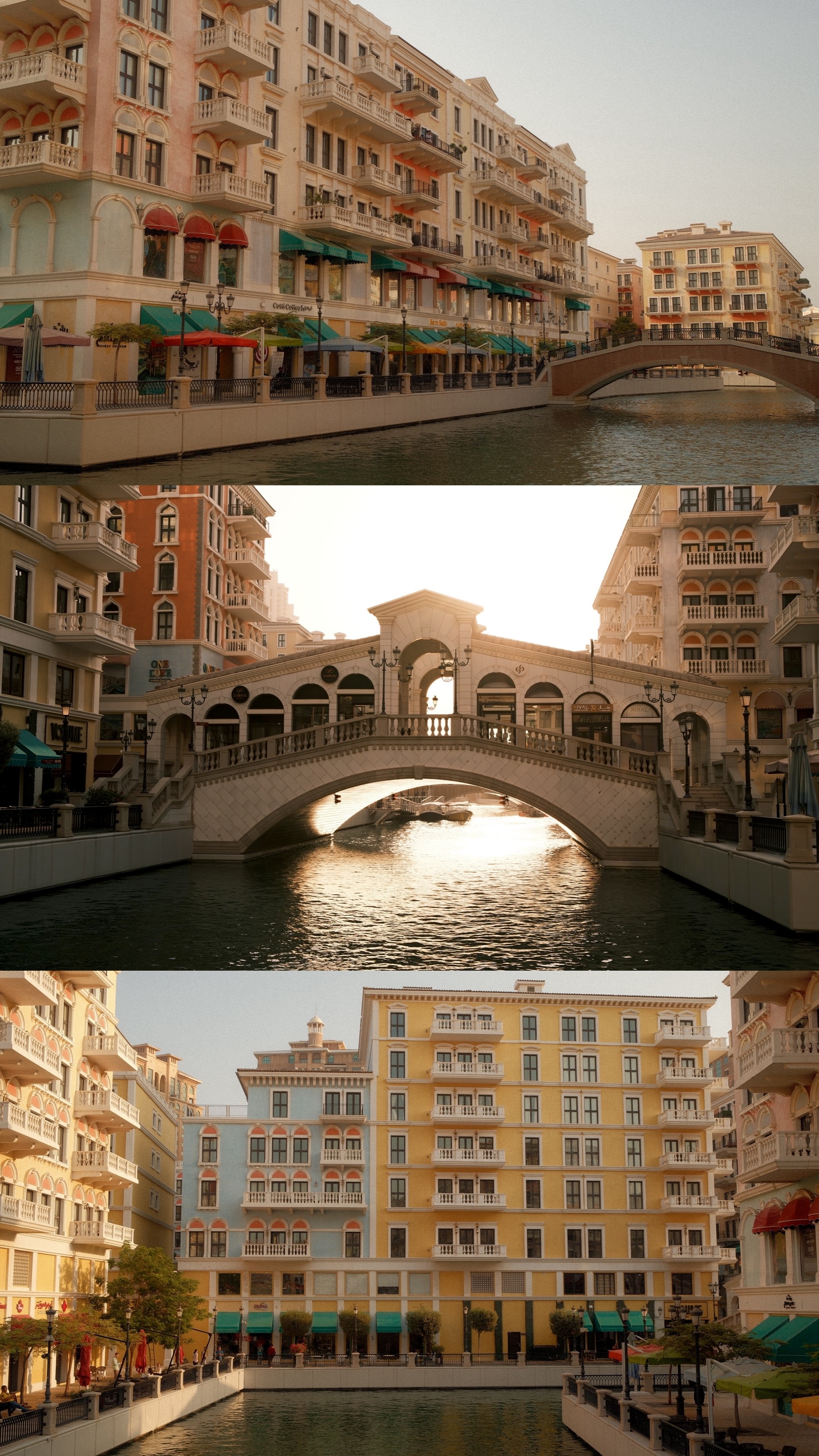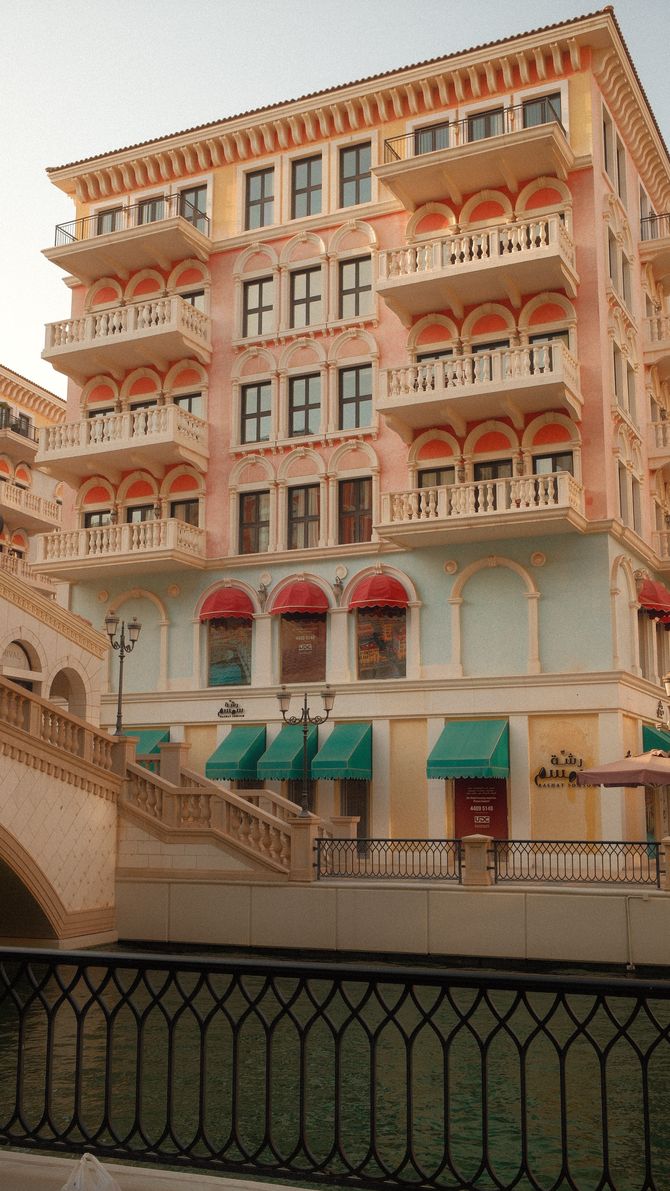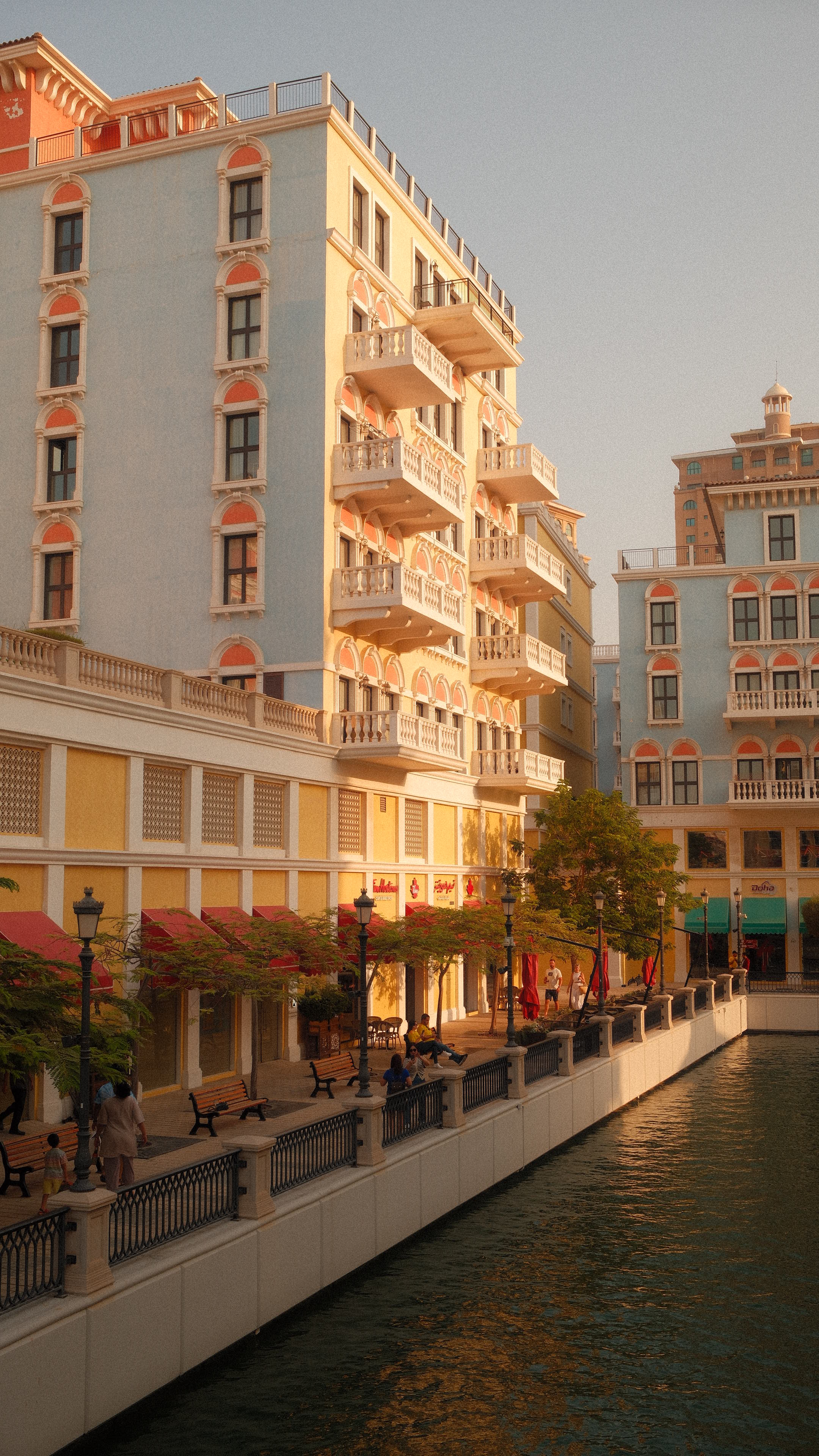 Qanat Quartier – This place was pretty cool. A new development on Pearl Island inspired by Venice, with picturesque canals, colorful buildings, and vibrant cafes. It was one of my other favorite stops for photos. I didn’t plan it this way, but I ended up here at sunset which was magical for lighting!