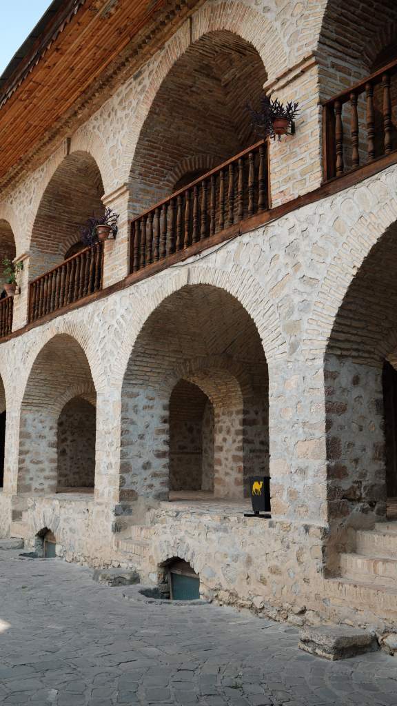 • Sheki Caravanserai (upper) – served as fortified inns for merchants, travelers, and their animals along the Silk Road.