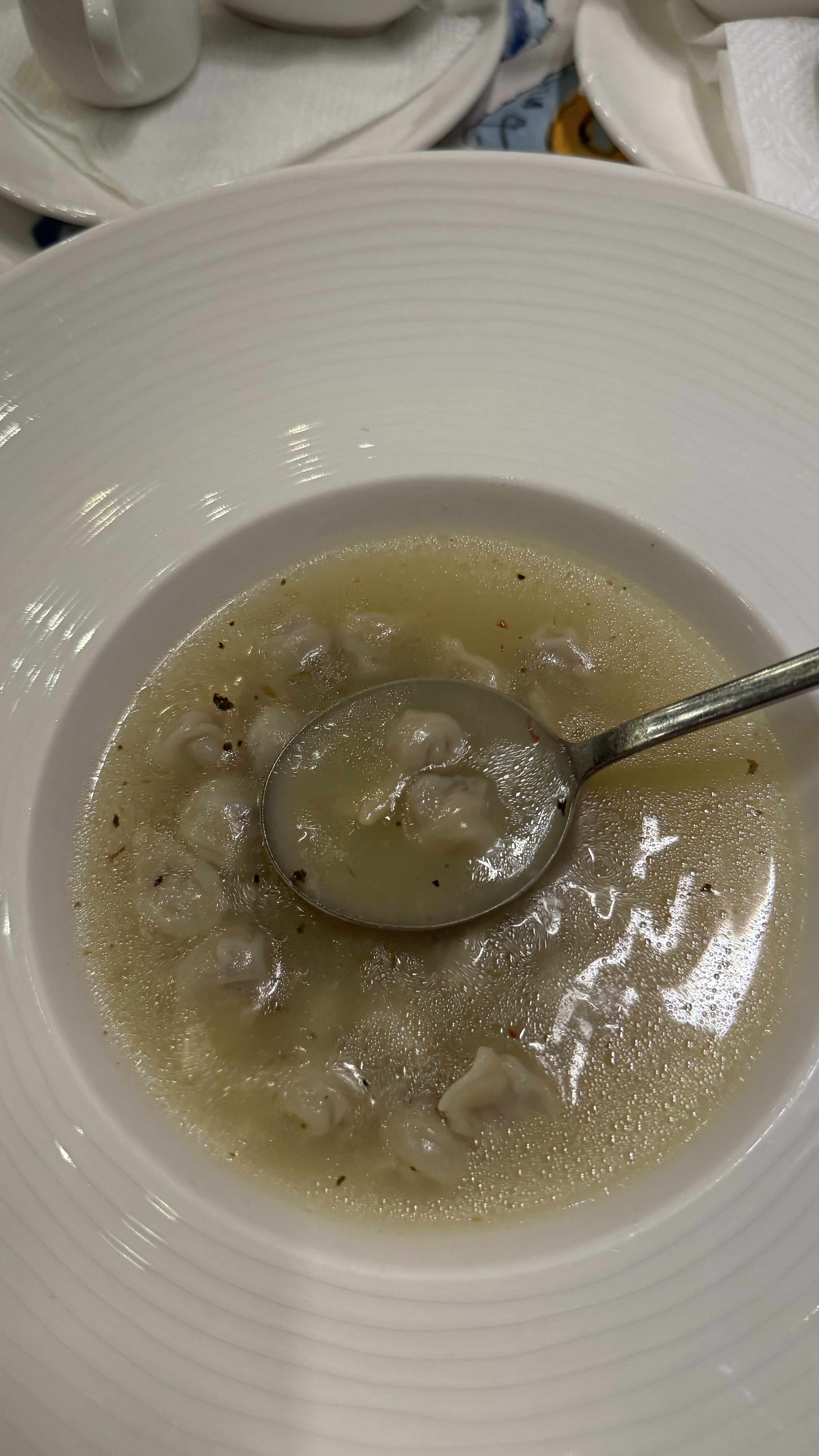 • Dushbara soup – traditional Azerbaijani dish featuring very small, meat-filled dumplings cooked in a rich lamb, beef, or chicken broth, often flavored with turmeric and saffron, and served with a side of vinegar and garlic sauce and dried mint