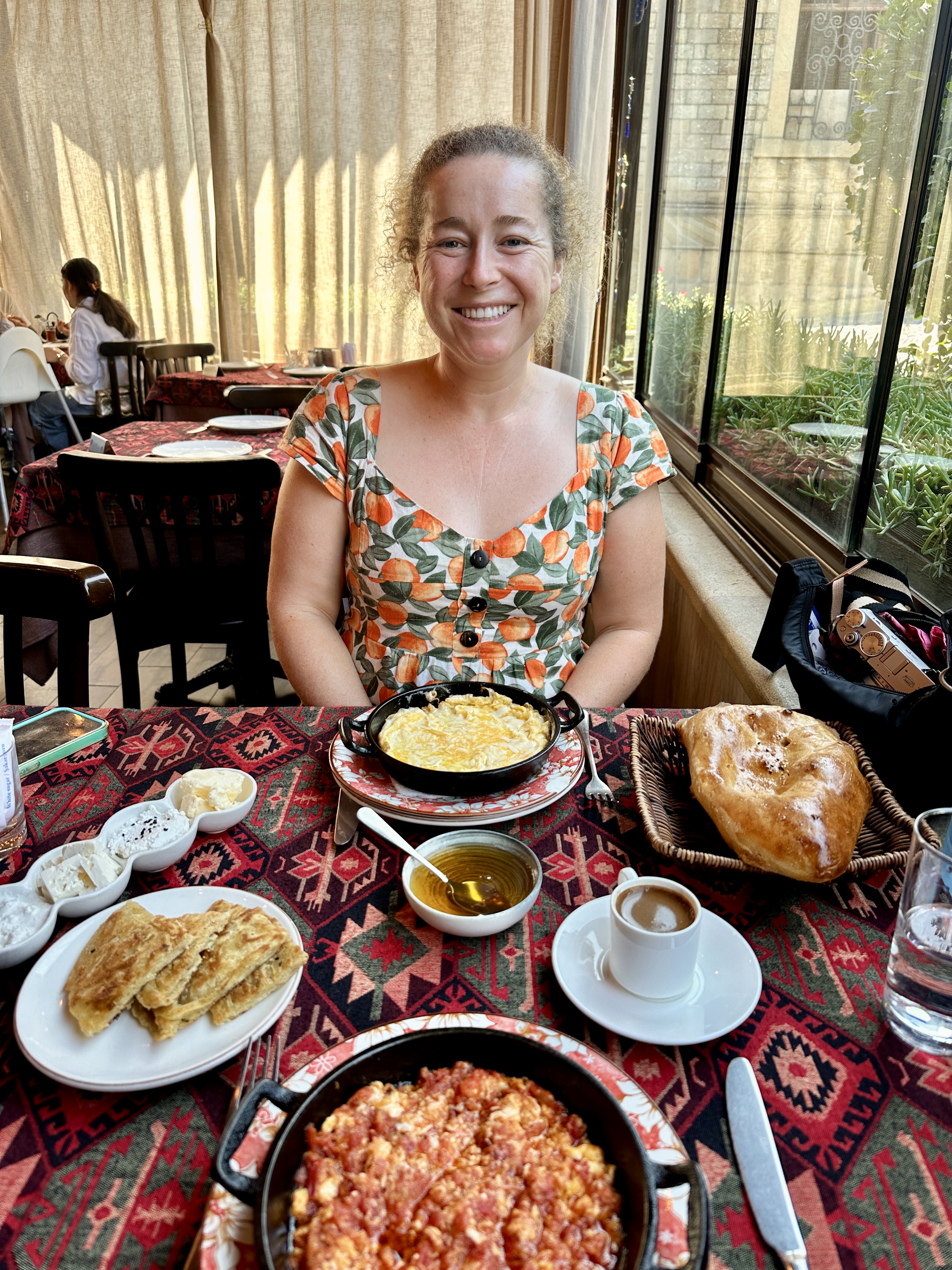 • Qayana Restaurant – Fabulous breakfast spot with local Azeri food. So fun to try a typical breakfast from here. Lots of yummy egg, cheese & bread dishes. The yogurt is incredible too!